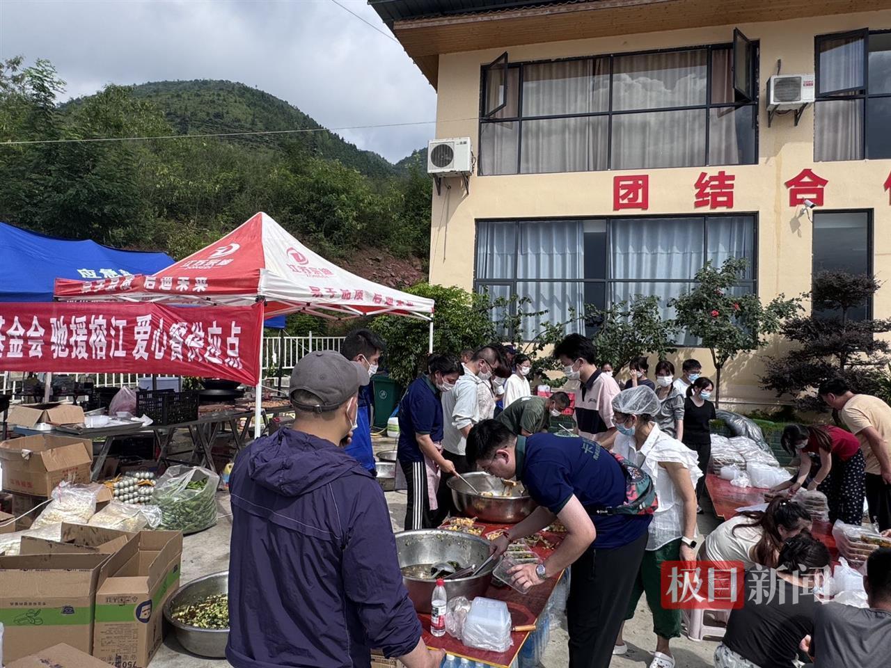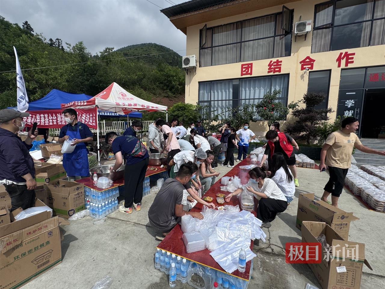 后勤大隊隊長胥中學告訴極目新聞記者,28日,他們從四川攜帶專業(yè)炊具趕到榕江縣,一家駕校提供了場地,隊員與來自各地的志愿者一起合作,制作盒飯往救災前線運送,“我們的隊伍里大多數(shù)都是退役軍人,退伍不褪色,志愿者都是來自五湖四海,等到災情結束,我們才會撤離。”