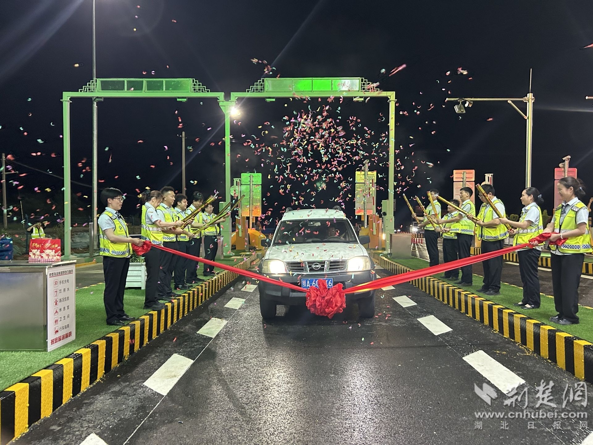 荊楚網(wǎng)(湖北日報(bào)網(wǎng))訊(通訊員李曉鵬 李嬌)7月1日零點(diǎn),由湖北交投集團(tuán)投資建設(shè)的京港澳高速(G4)楊店收費(fèi)站正式更名為“桃花驛收費(fèi)站”,并投入運(yùn)營。