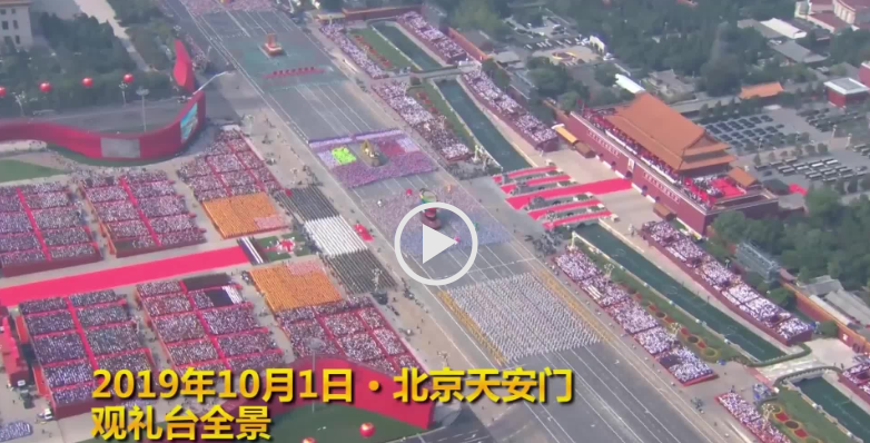 2019年10月1日天一亮,一個東西長超170米、南北縱深超130米、總觀禮位達2.7萬個的巨型觀禮臺,出現(xiàn)在天安門廣場上,觀眾可以站在2層樓高的地方俯瞰閱兵儀式和群眾游行。