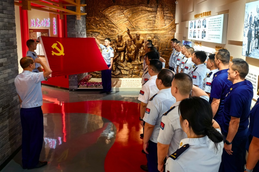 在莊嚴肅穆的黨員政治生活館中,消防救援人員沿著各個主題展區勾勒的歷史脈絡,回顧了黨領導人民走過的崢嶸歲月與輝煌成就。一幅幅圖片、一件件實物、一段段文字,無聲講述著信仰的崇高與道路的艱辛,深刻觸動著大家的心靈。在鮮紅的黨旗下,大家緊握右拳,以洪亮之聲重溫入黨誓詞,鏗鏘誓言在館內回響。