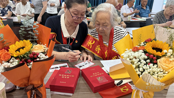活動在國歌聲中拉開帷幕,全體黨員面對黨旗重溫入黨誓詞。紫陽街道黨工委副書記、辦事處主任劉謙以《踐行八項規定 共建清廉社區》為題授課,結合典型案例剖析作風建設要求。隨后,街道領導為老黨員代表頒發“光榮在黨50年”紀念章。