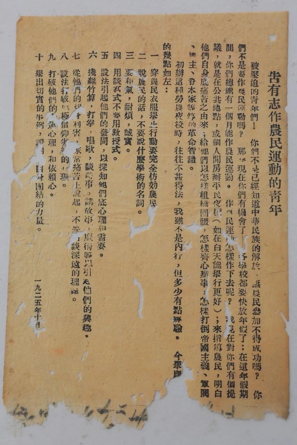 鄂東早期黨組織(1925年大革命時期),組織農民運動文告原件。