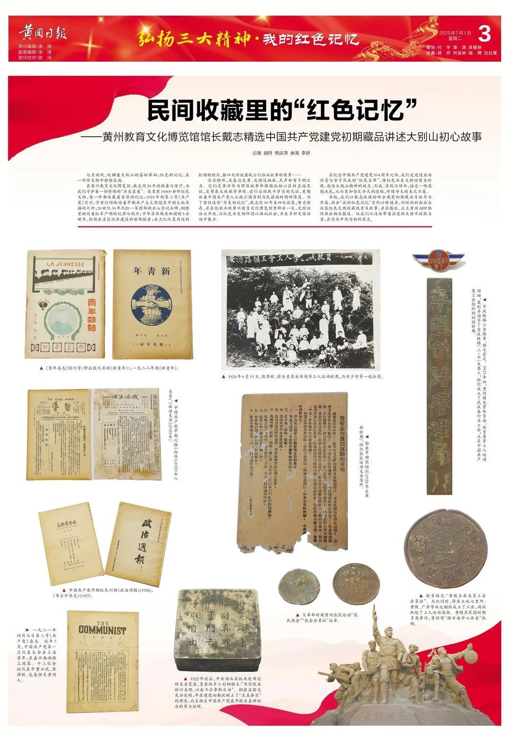 今起,我們以戴志收藏的部分建黨初期藏品專版作為開篇,推出“我的紅色記憶”系列以饗讀者,同時向社會公眾征集紅色文物收藏線索及故事,并在報紙、云上黃岡APP陸續推出相關報道。讓我們從這些帶著溫度的文物中汲取力量,在傳承中續寫新的榮光。