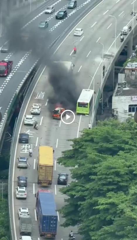 7月1日中午,多名網(wǎng)友發(fā)布視頻稱,中山市小欖鎮(zhèn)沙口大橋一車輛起火并失控滑行,碰到多輛行駛中的車輛。