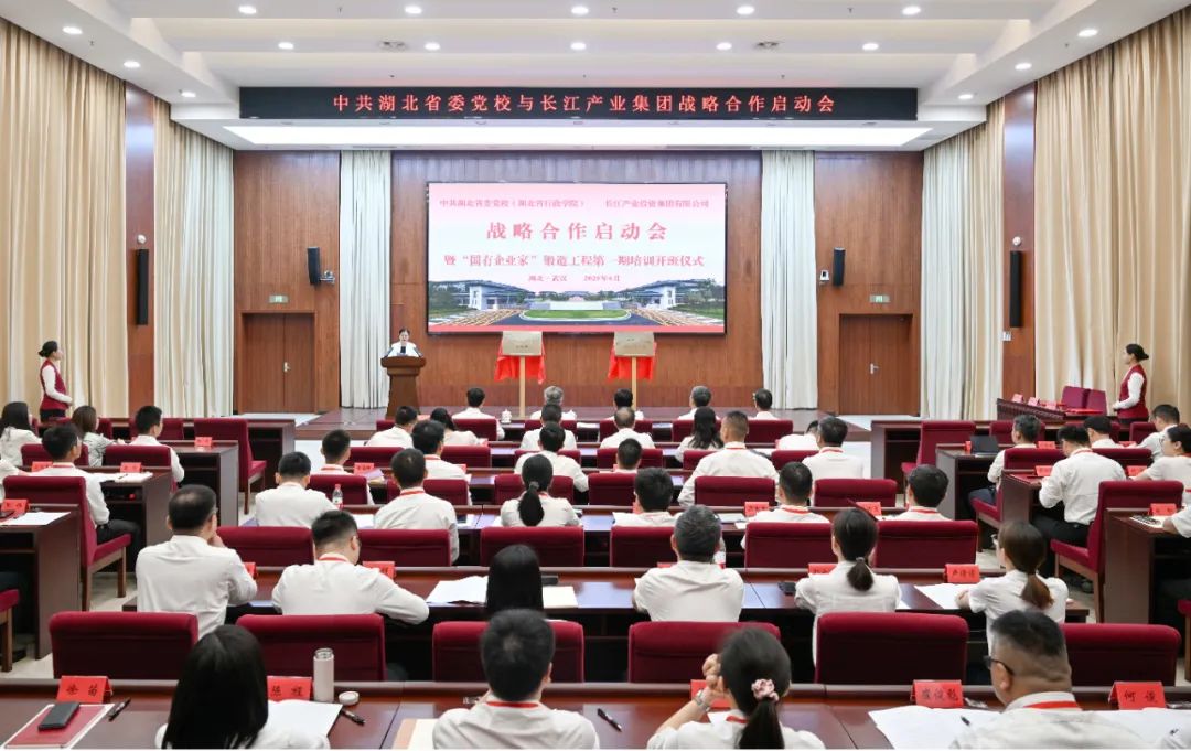在喜迎中國共產(chǎn)黨建黨104周年之際,6月30日,中共湖北省委黨校(湖北省行政學(xué)院)與長江產(chǎn)業(yè)投資集團有限公司戰(zhàn)略合作啟動會暨“國有企業(yè)家”鍛造工程第一期培訓(xùn)開班儀式在省委黨校圖書信息樓多功能廳隆重舉行。省委黨校常務(wù)副校(院)長趙斌,長江產(chǎn)業(yè)集團黨委書記、董事長黎苑楚出席儀式并致辭,共同開啟校企合作、產(chǎn)教融合賦能干部人才隊伍建設(shè)的新征程。