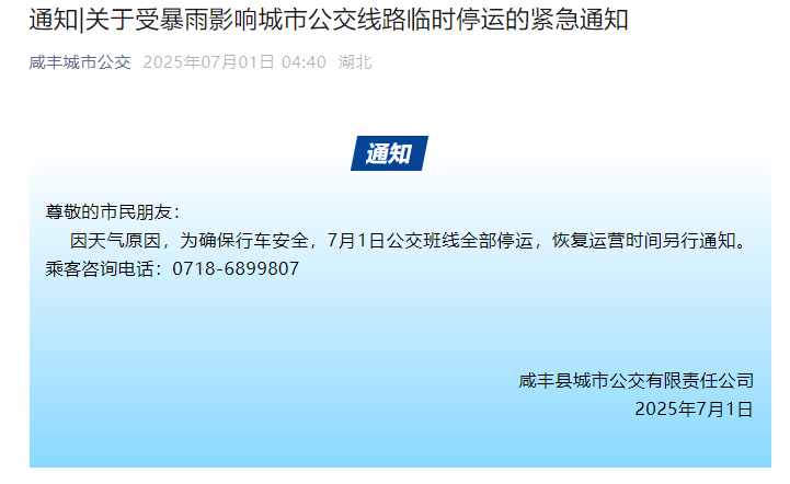 咸豐縣氣象臺7月1日9時57分繼續發布暴雨紅色預警信號:過去12小時最大降水出現在高樂山鎮(咸豐國家站)為353.4毫米,已達到極端暴雨標準。預計今天白天,高樂山鎮和曲江鎮及周邊鄉鎮降雨仍將持續,雨量30-50毫米,并伴有陣風5-7級,山區山洪、地質災害、中小河流洪水、城鄉積澇風險極高,請特別加強防范。