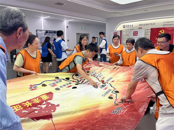 在“長征印記挑戰賽”中,各隊用畫布模擬“中央紅軍長征路線圖”,以網球為“紅軍”完成從瑞金到會寧的“征程”。畫布上密布的“圍追堵截”洞口考驗著團隊協作——稍有不慎,網球墜落即需重新出發;“光輝歲月排序賽”將活動推向高潮。各隊領取30張涵蓋1921—2021年黨史大事件的卡片,在10分鐘內完成時間線排序。從“中共一大召開”到“脫貧攻堅全面勝利”,一張張卡片串聯起黨的百年奮斗史。