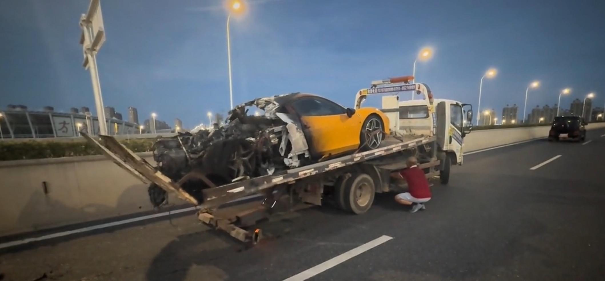 7月1日晚,一位目擊者告訴極目新聞記者,下午5時許,他在桃新高架看見一輛黃色法拉利起火,當時駕駛員和副駕駛員并沒發現,是旁邊有人提醒,她們才意識到,隨即停車離開至安全位置。