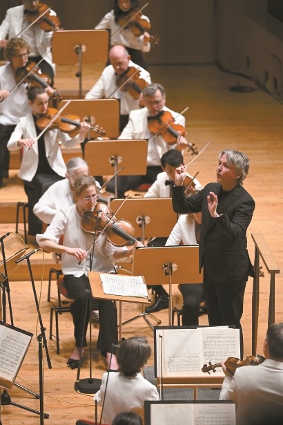 1日晚,薩洛寧執(zhí)棒紐約愛樂樂團(tuán)帶來法國作品專場。 解放日報(bào)記者 董天曄 攝