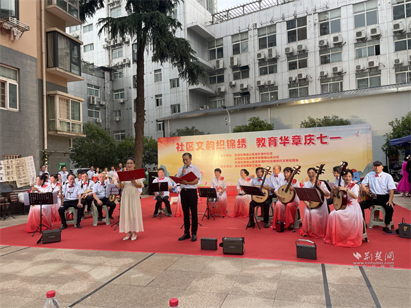 在湖北省地質(zhì)職工醫(yī)院小區(qū)小廣場,東湖村社區(qū)舉辦“社區(qū)文韻織錦繡,教育華章慶七一”主題活動。