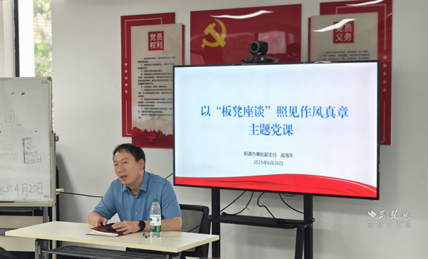 “以板凳座談?wù)找娮黠L真章”主題黨課。 通訊員供圖