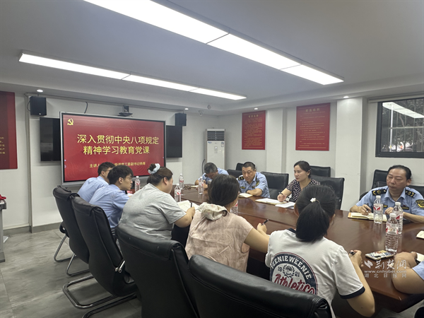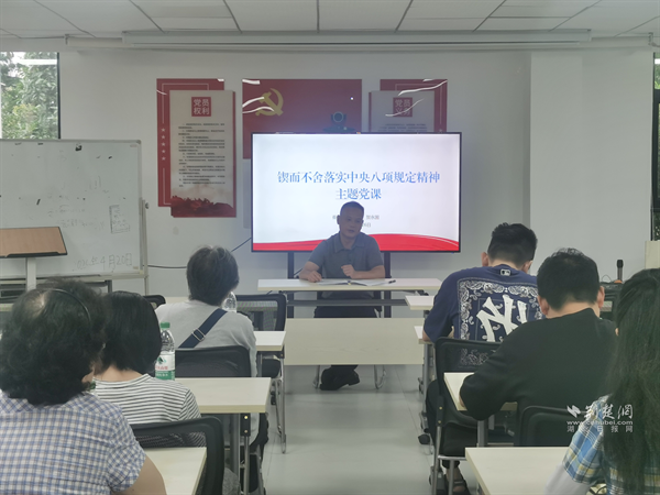 在街道綜合執(zhí)法中心,珞珈山街道黨工委副書記楊菁為全體黨員講授“深入貫徹中央八項規(guī)定精神學習教育”專題黨課。