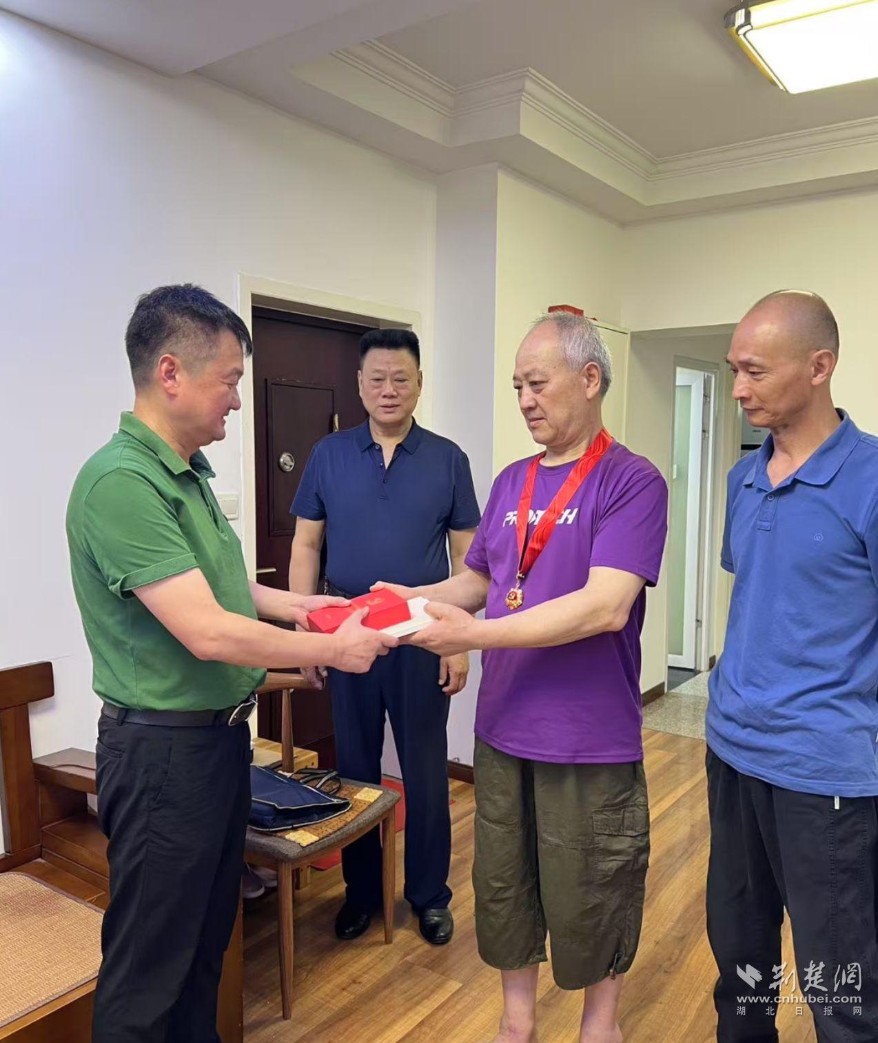荊楚網(湖北日報網)訊(通訊員 凌端)為慶祝中國共產黨成立104周年,弘揚黨的光榮傳統和優良作風,傳遞對老黨員干部的關心關懷,7月1日,黃陂區司法局黨組書記、局長張遠波,局黨組成員、政治(警務)處主任涂文浩,機關支部副書記、四級調研員彭明祥以及老干支部副書記熊國威一同走訪慰問老黨員干部,為他們頒發“光榮在黨50年”紀念獎章,并向他們致以節日的問候。