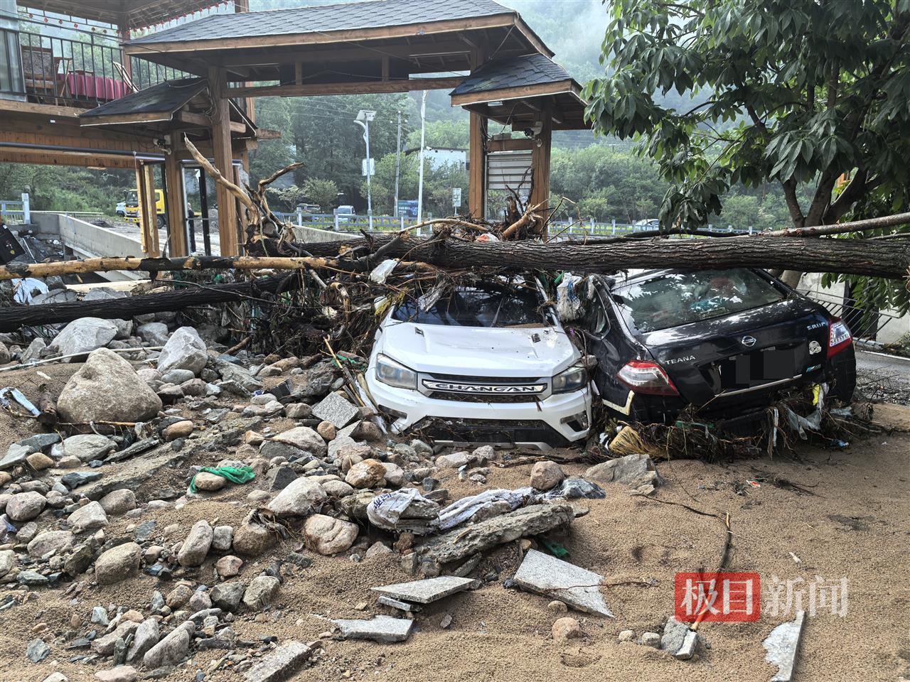 事發當天晚上,他的民宿只住了一個游客。大水來臨時,一樓全部被淹沒,劉先生趕緊砸破二樓的窗戶,讓游客從二樓安全逃生。目前,家里的淤泥還有到大腿這么深。他也買了鐵鍬準備回家清理。