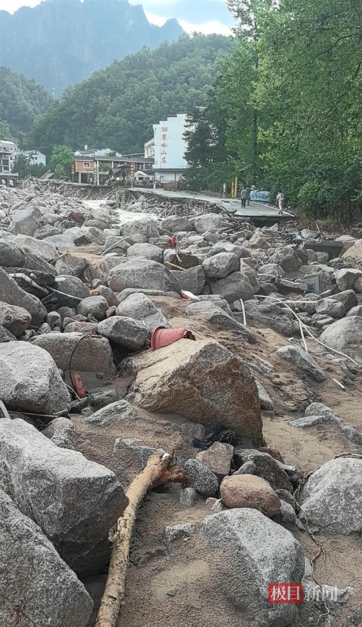 7月2日,在太平鎮東坪村老界嶺,景區山中經營民宿的劉先生告訴極目新聞記者,目前山上已經斷水斷電兩天,交通中斷,車輛無法通行,希望政府能夠盡快搶通道路。