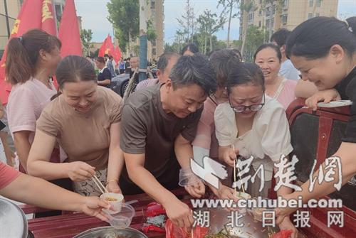 活動尚未開賽,味蕾已率先狂歡。56個村(社區)輪流呈現美食,每天24種精心準備的特色小吃、飲品在場地周圍驚艷亮相,形成一條飄香四溢的美食長廊。羅嶺素蟠龍的清香、貢士蘭花豆的酥脆、大王廟豌豆涼粉的爽滑、陸賽韭菜粑粑的咸鮮、溫嶺脆皮冬瓜的別致、明星三皮罐涼茶的沁爽……24種帶著濃濃鄉土情誼的美食飲品于當日17時30分前悉數就位。18時15分一到,免費品嘗試吃活動正式開始,群眾穿梭其間,大快朵頤,共享這份獨屬于舊口的夏日清涼與鄰里溫情。