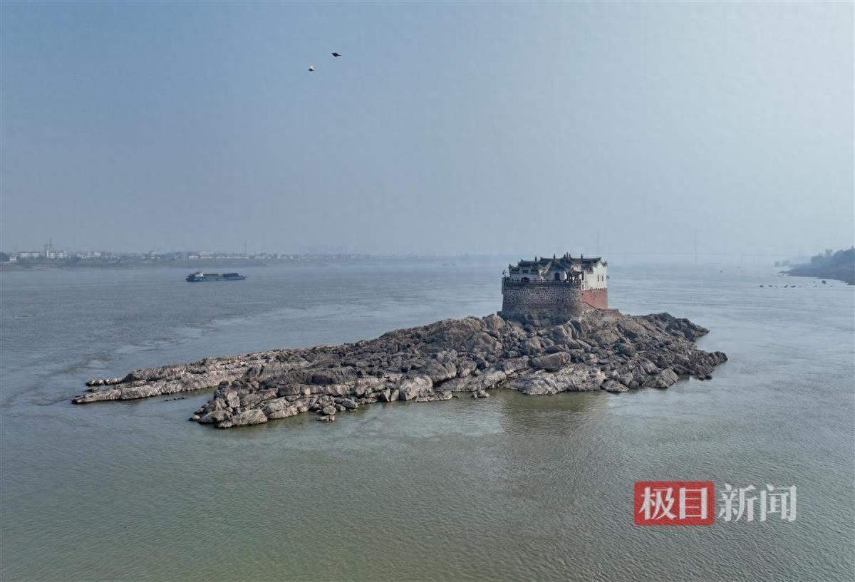 2024年10月29日,枯水期的長(zhǎng)江鄂州段水位12.00米。因水位降低,鄂州觀音閣下露出了巨大的礁石底座,露出了真容。