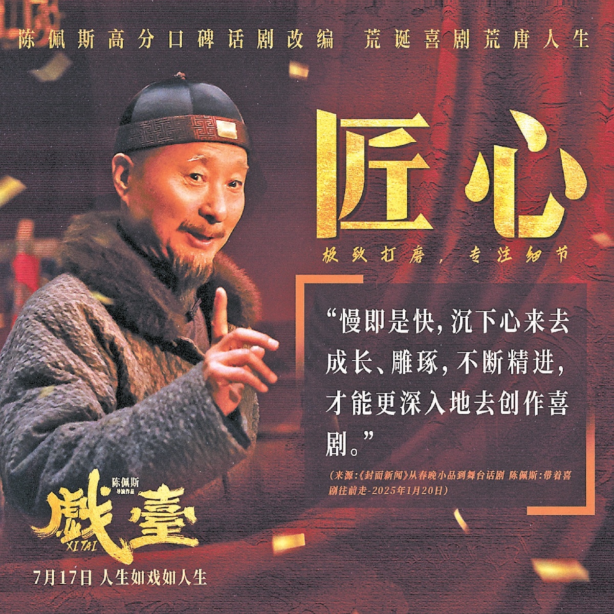 “戲是演給人看的,可劇場裝不下所有想看的人。”在電影《戲臺》發(fā)布的“嬉笑怒罵皆風骨”陳佩斯特輯中,陳佩斯這句話揭開了他將《戲臺》從話劇舞臺搬上銀幕的初心。從春晚舞臺為千家萬戶帶來笑聲,到如今為話劇和電影奔忙,陳佩斯對表演的熱愛幾十年如一日,始終保持著孩子般的純粹、真誠和求知欲,而這也奠定了電影《戲臺》的品質(zhì),影片由陳佩斯、黃渤、姜武、尹正領銜主演,楊皓宇特邀主演,余少群、陳大愚、徐卓兒主演,尹鑄勝友情出演,將于7月17日全國上映。
