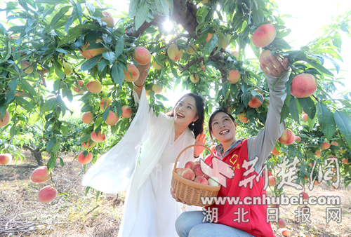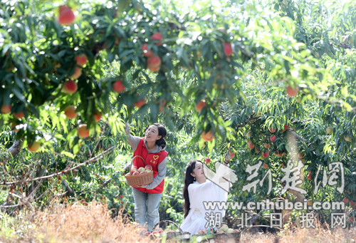 采摘桃子。通訊員 趙平 攝