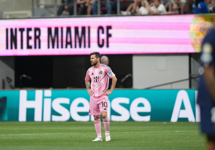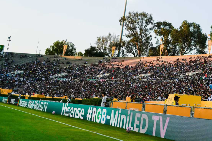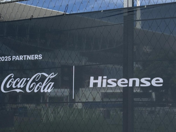 2025世俱杯期間,邁阿密硬石球場的外圍,海信的廣告很顯眼。