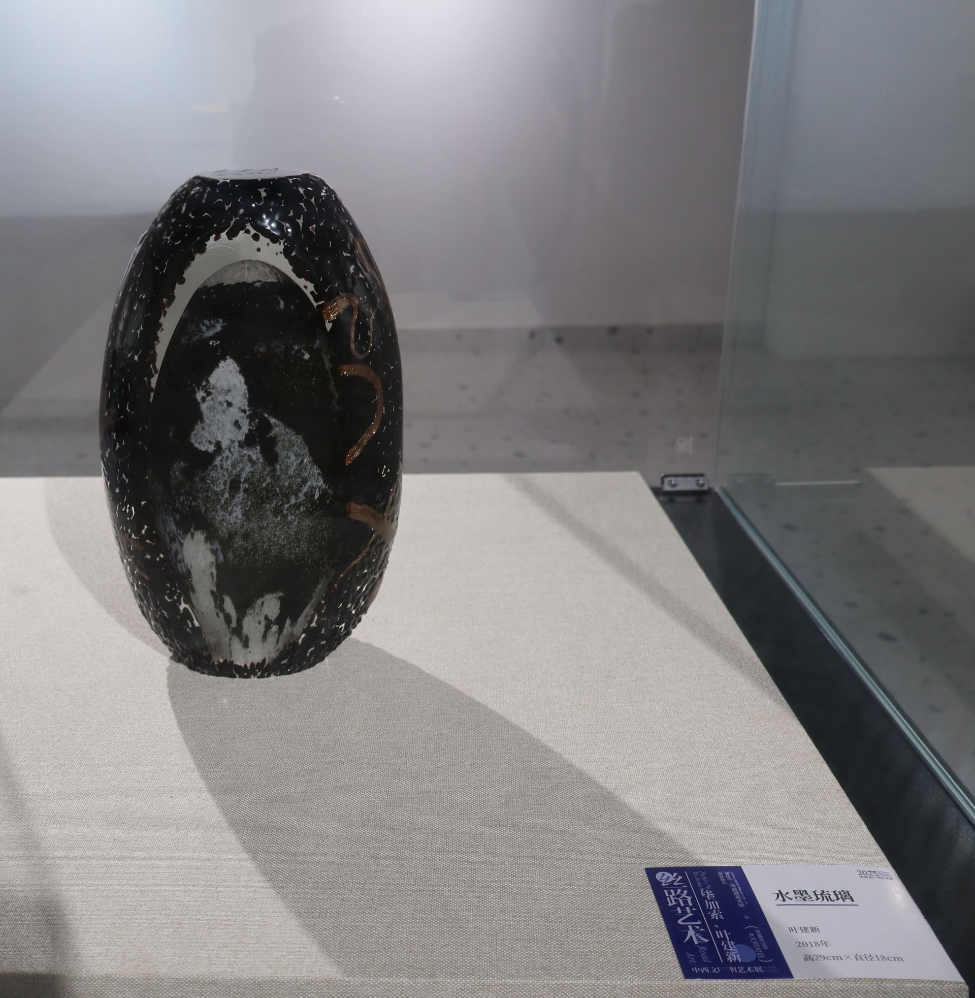 “我的作品試圖在水墨意境中尋找與西方現代藝術的共鳴點,這種探索本身就是絲綢之路精神的當代延續。”葉建新教授現場分享創作感悟,并向普生創藝園總經理、普生·湯遜湖美術館館長劉瀏捐贈了自己的代表畫作。