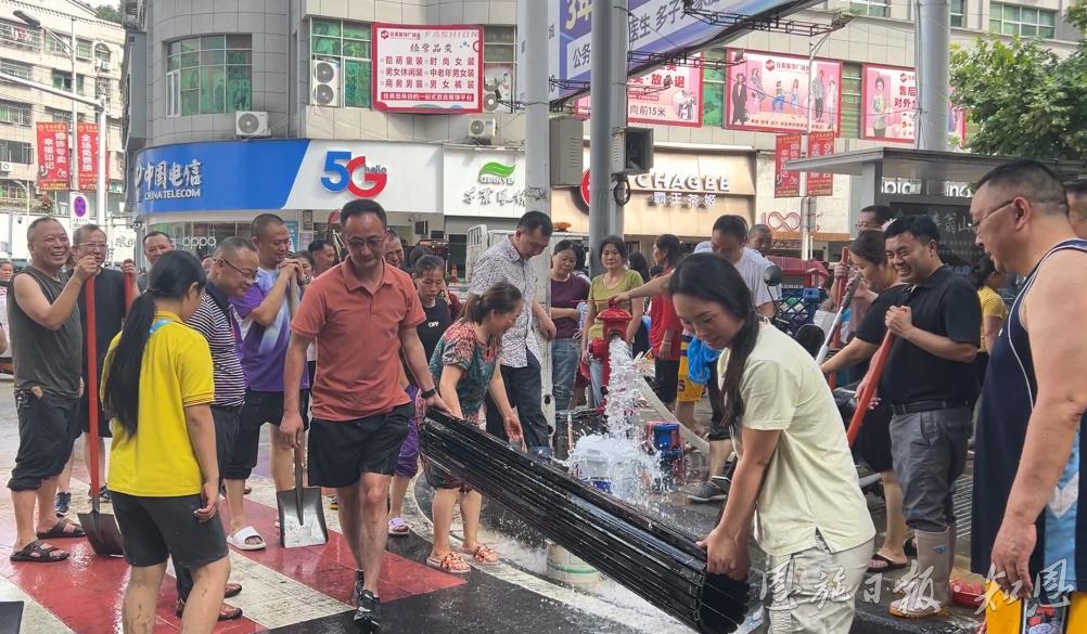 公安、城管、消防按照“1+N”聯動機制,實現跨部門高效協同作業,通過“機械清淤+人工疏通”的方式,清運垃圾120噸,兩小時打通交通主要道。