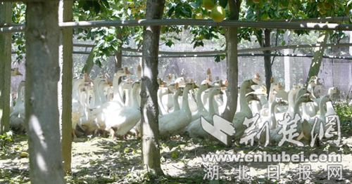 夏日午后,穿梭在梨林間,四周彌漫著清香而寧靜的氣息。梨林深處,一群大白鵝的叫聲打破了寧靜。這正是“梨+”模式的又一亮點(diǎn)——林下養(yǎng)鵝。這幾年,汪景虎將傳統(tǒng)種植與林下養(yǎng)殖相結(jié)合,通過“林下養(yǎng)鵝、鵝肥育林”的立體循環(huán)模式,不僅提高了土地的利用率,還增加了經(jīng)濟(jì)效益。