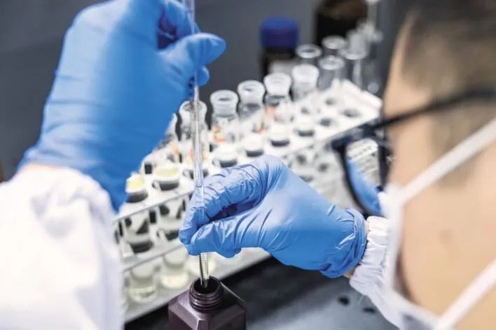 ▼武漢君集環境科技股份有限公司的實驗室內,工作人員正在進行水質化驗工作