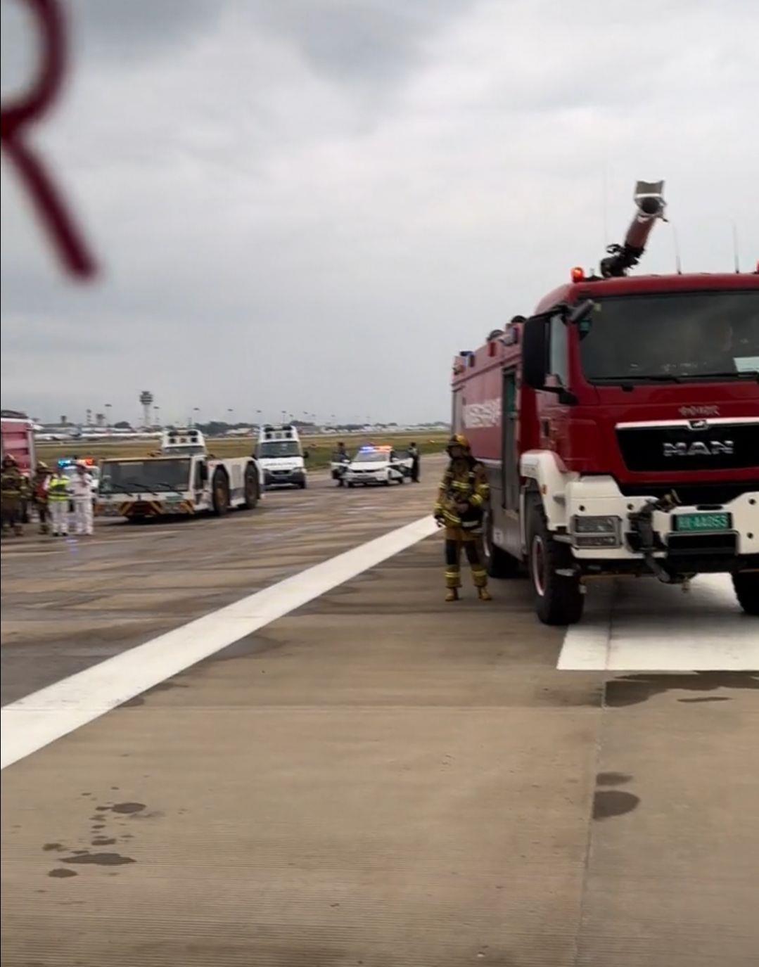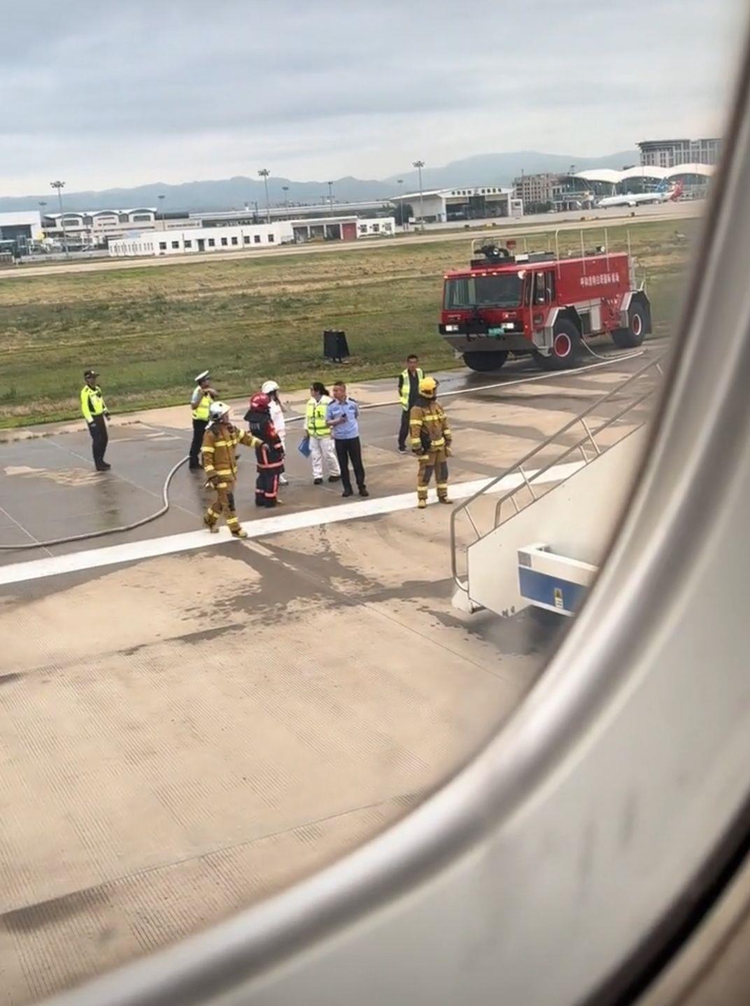 天津航空GS7833次航班停飛后,有消防、公安、救護(hù)人員趕到現(xiàn)場(來源:網(wǎng)絡(luò))