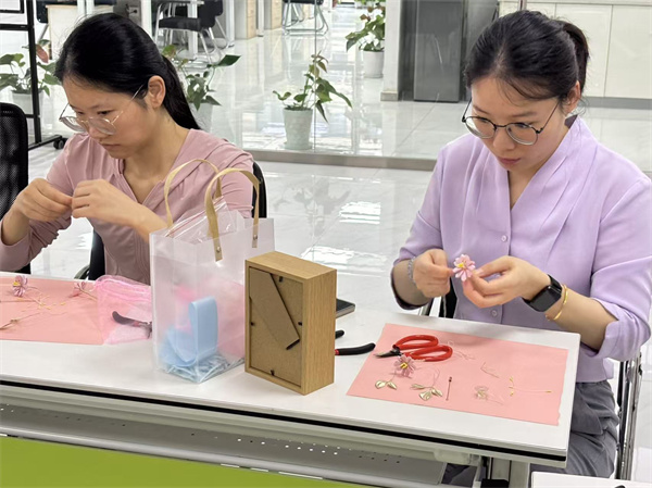 “平時對著電腦加班,手作時特別放松。”陳女士舉著自己的作品笑言,不僅學會了手藝,更感受到社區對園區員工的貼心,“這種把非遺送進園區的活動,比單純開會更有溫度。”