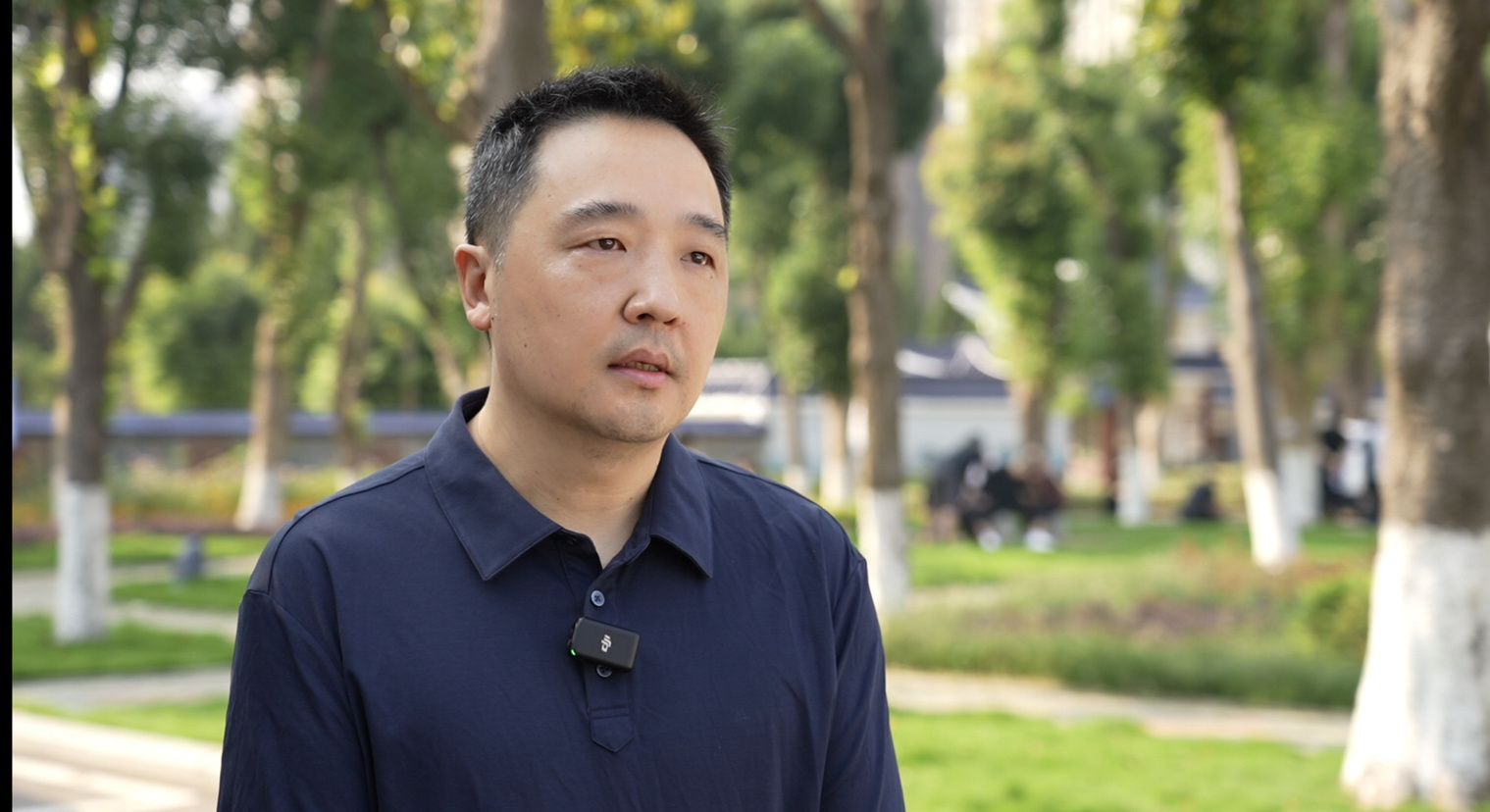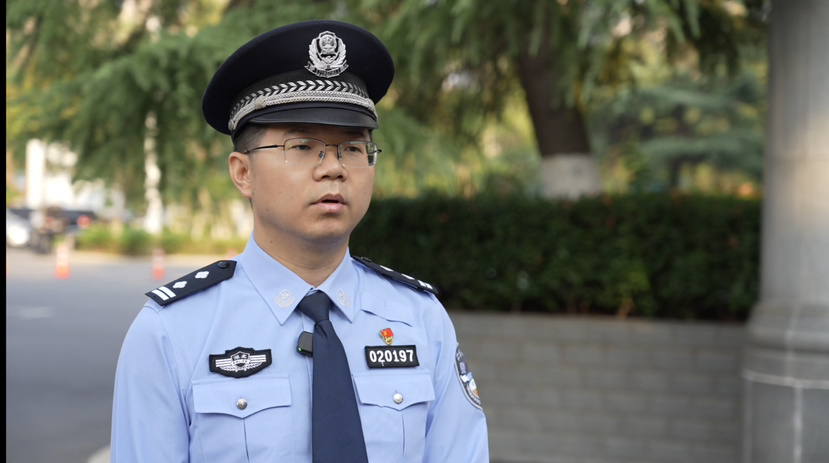 圖為武漢市公安局科技信息化支隊三大隊民警胡磊接受記者采訪。