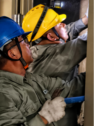 國網(wǎng)荊州供電公司城區(qū)供電中心開發(fā)區(qū)供電所接報后,搶修人員火速抵達(dá)。經(jīng)排查,故障點(diǎn)鎖定為豎井深處一處叉接箱卡座。豎井空間狹窄,悶熱異常。搶修人員沒有絲毫遲疑,在做好通風(fēng)、氣體檢測及嚴(yán)密安全防護(hù)后,系好安全繩,肩扛沉重設(shè)備,輪番深入井內(nèi)作業(yè)。汗水瞬間浸透工裝,安全帽下臉龐通紅,但手上動作卻分秒未停。