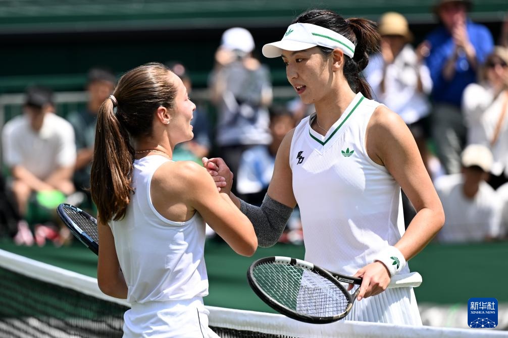 7月3日,王欣瑜(右)在比賽后與森梅茲致意。新華社記者 趙丁喆 攝