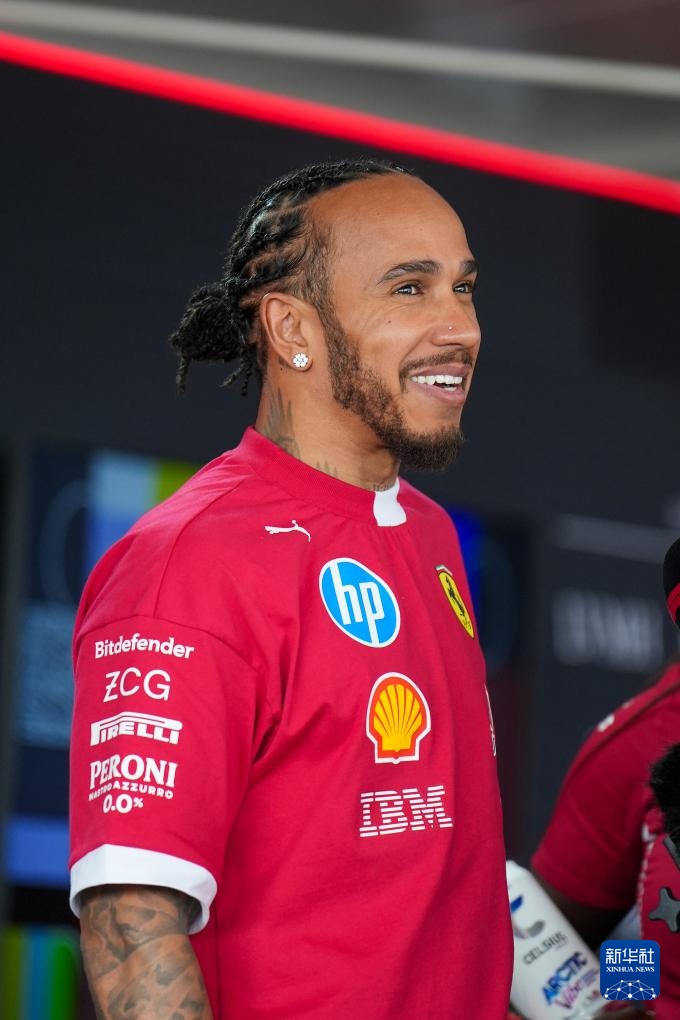 7月3日,法拉利車隊英國車手漢密爾頓在活動中。新華社記者 吳魯 攝