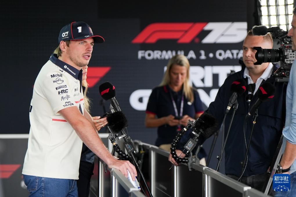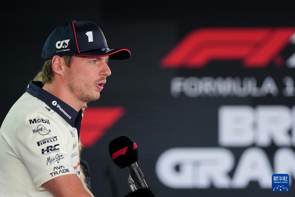 7月3日,紅牛車隊荷蘭車手維斯塔潘在活動中接受媒體采訪。新華社記者 吳魯 攝