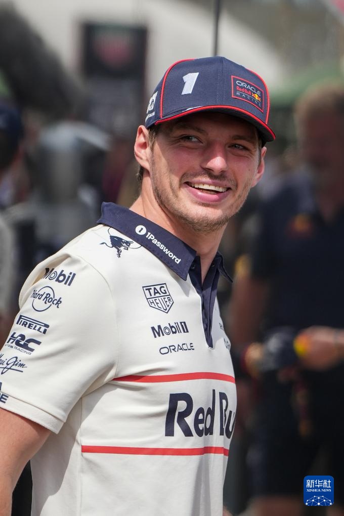 7月3日,紅牛車隊荷蘭車手維斯塔潘在活動中。新華社記者 吳魯 攝