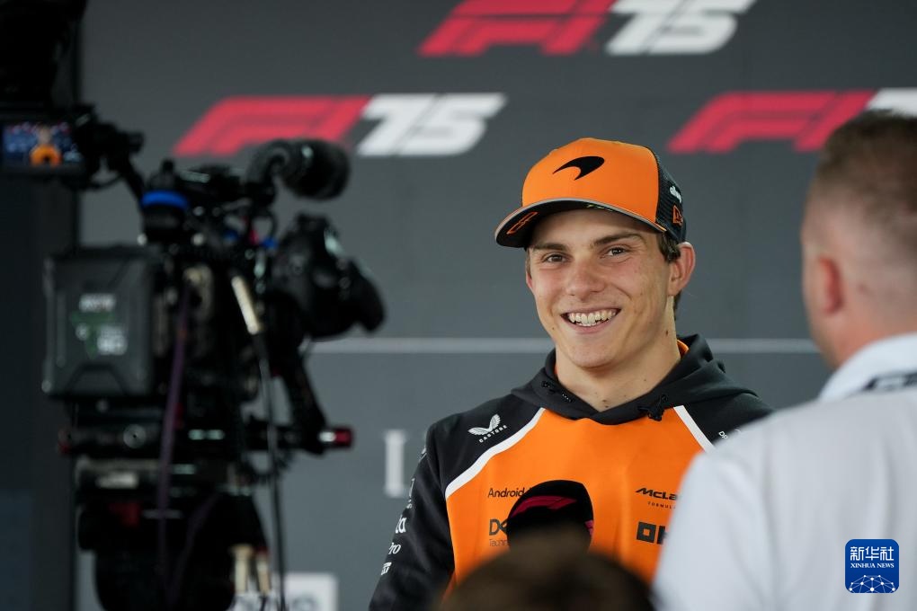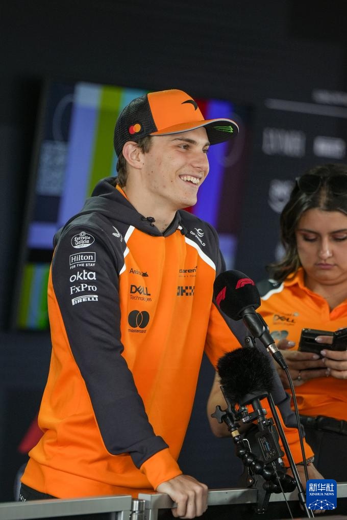 7月3日,邁凱倫車隊澳大利亞車手皮亞斯特里在活動中接受媒體采訪。新華社記者 吳魯 攝