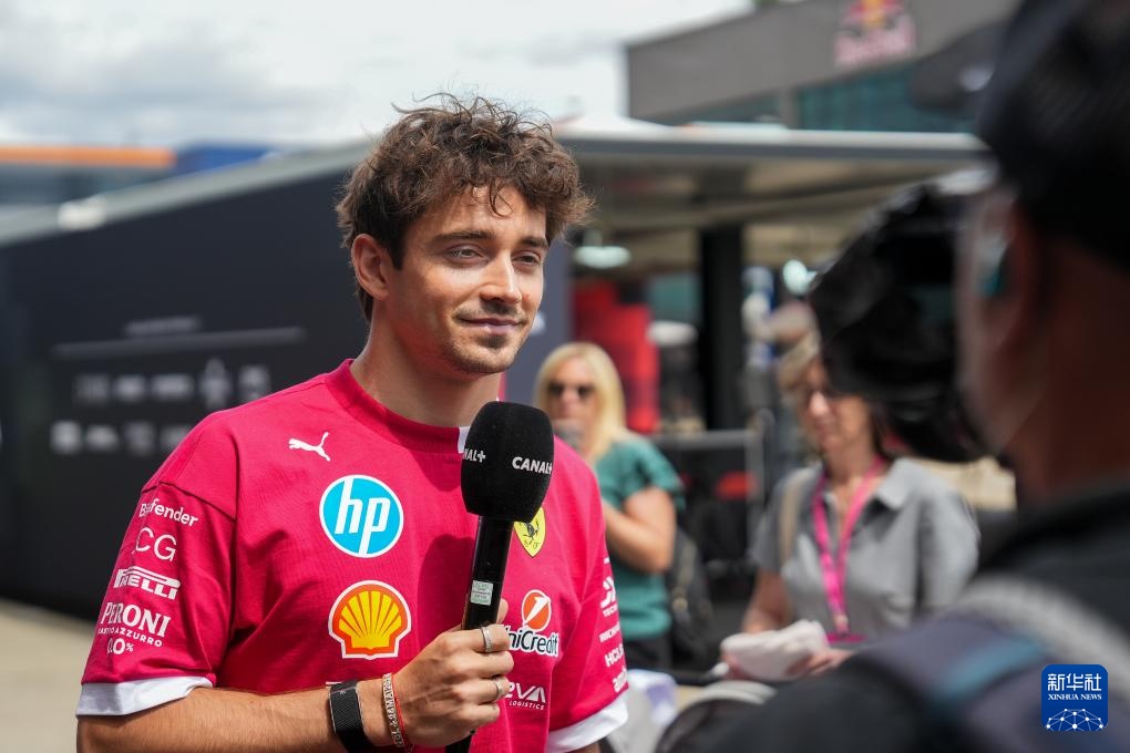 7月3日,法拉利車隊摩納哥車手勒克萊爾在活動中接受媒體采訪。新華社記者 吳魯 攝