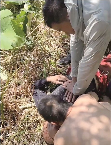 楚天都市報(bào)極目新聞訊(記者陸緣 實(shí)習(xí)生覃紫鈺)市民在湖中溺水,沉入湖底,武漢光谷花山街河湖管護(hù)隊(duì)隊(duì)員胡旭華一頭扎進(jìn)水里,在隊(duì)員胡衛(wèi)東配合下,快速將人拖到岸上,緊急進(jìn)行十多分鐘的心肺復(fù)蘇后,逐漸恢復(fù)意識。“當(dāng)時(shí)沒有想那么多,救人要緊,換做誰都會那么做的。”7月4日,回想起前一天發(fā)生的事,武漢光谷花山街河湖管護(hù)隊(duì)隊(duì)員胡旭華覺得自己做了一件微不足道的事。