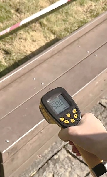 工作人員向記者解釋,平常報(bào)的溫度是空氣中1.5米高百葉箱里的溫度,博主測(cè)得的地表溫度55.8℃是可能達(dá)到的。不過(guò)由于太陽(yáng)直射,地面上的溫度和人體在西湖邊感受到的溫度其實(shí)是兩個(gè)概念。