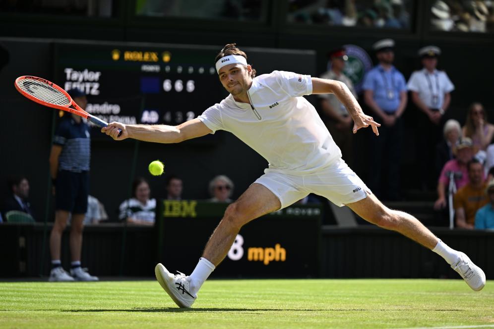 7月4日,弗里茨在比賽中回球。新華社記者 趙丁喆 攝