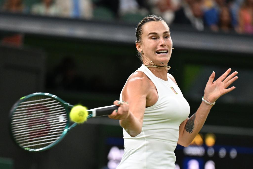 7月4日,薩巴倫卡在比賽中回球。新華社記者 趙丁喆 攝