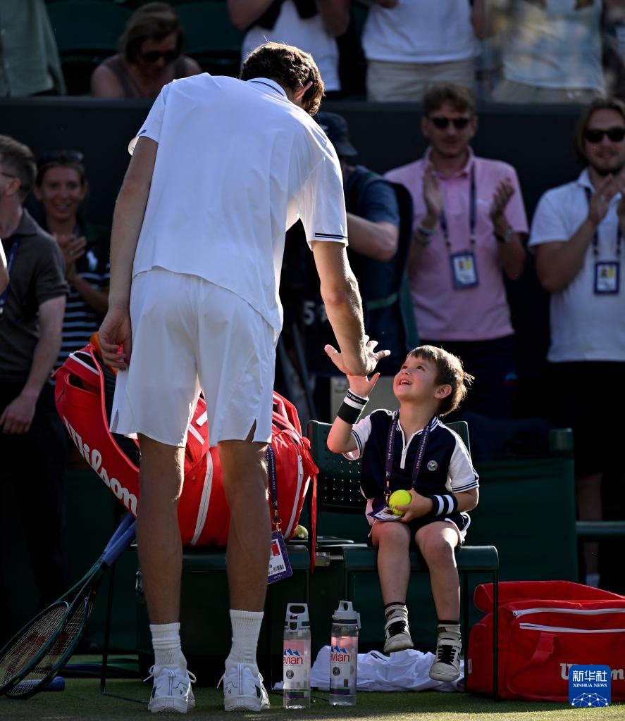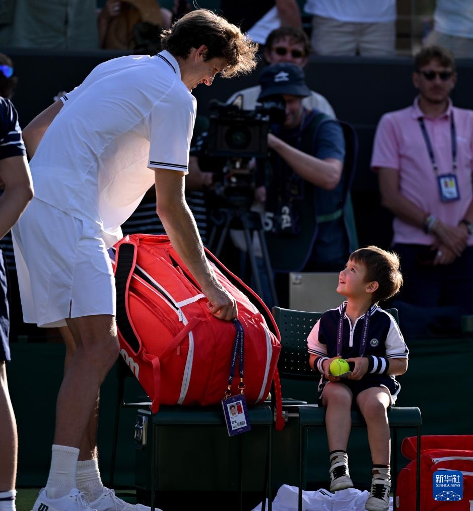 7月4日,尼古拉斯·賈里(左)在獲勝后與兒子互動。新華社記者 李穎 攝
