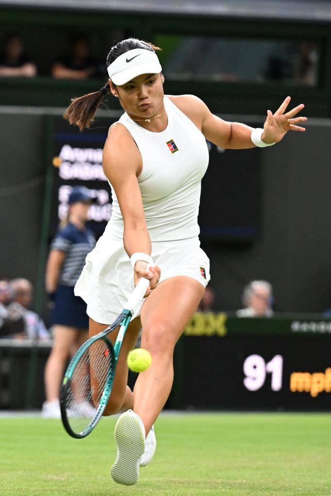 7月4日,拉杜卡努在比賽中回球。新華社記者 趙丁喆 攝