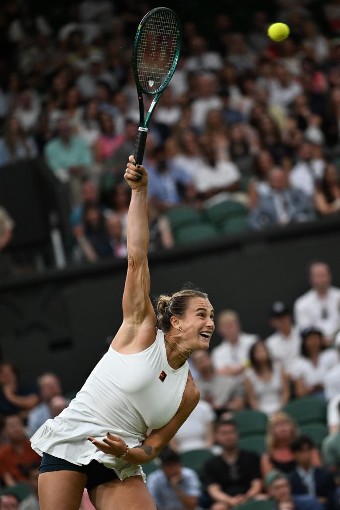 7月4日,薩巴倫卡在比賽中。新華社記者 趙丁喆 攝