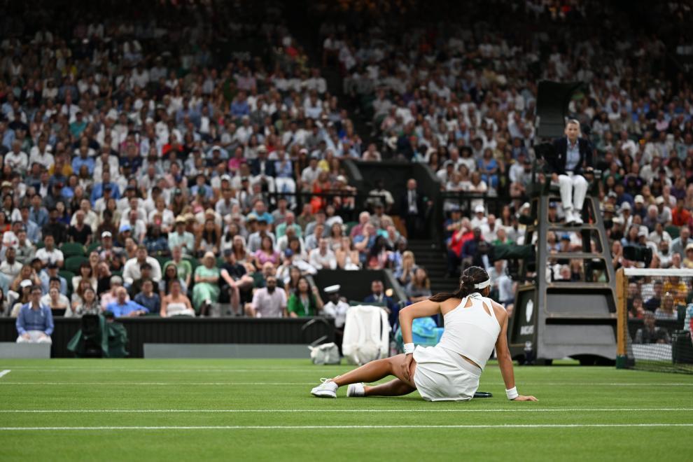 7月4日,拉杜卡努在比賽中摔倒受傷。新華社記者 趙丁喆 攝