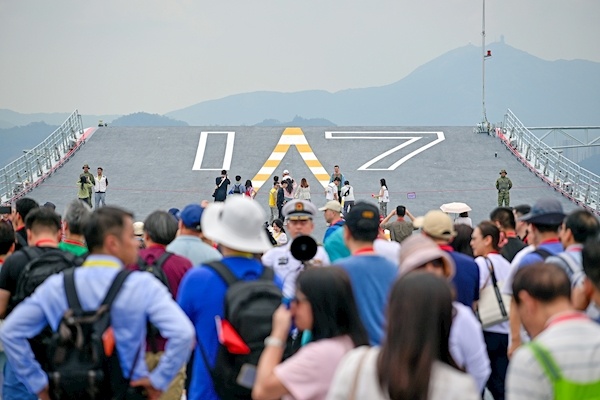 民眾在山東艦上參觀、拍照