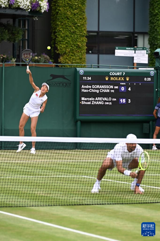 當日,在英國倫敦舉行的2025溫布爾登網球公開賽混合雙打第一輪比賽中,張帥(中國)/阿雷瓦洛(薩爾瓦多)組合2比0戰勝詹皓晴(中國臺北)/約蘭松(瑞典)組合,晉級下一輪。