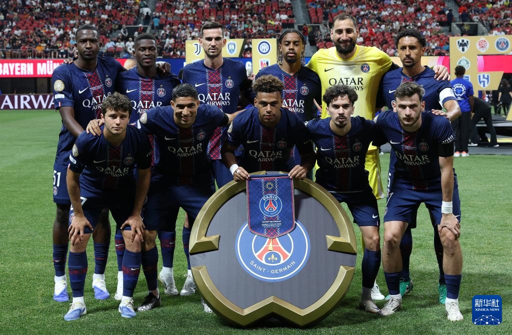 7月5日,巴黎圣日耳曼隊首發球員在比賽前合影。