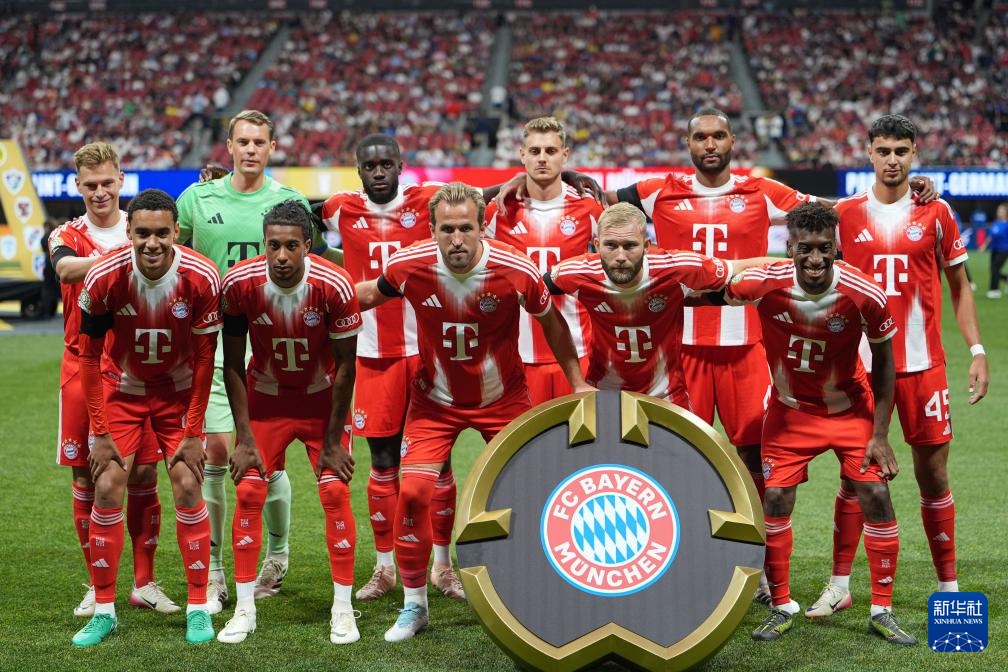 7月5日,拜仁慕尼黑隊首發球員在賽前合影。